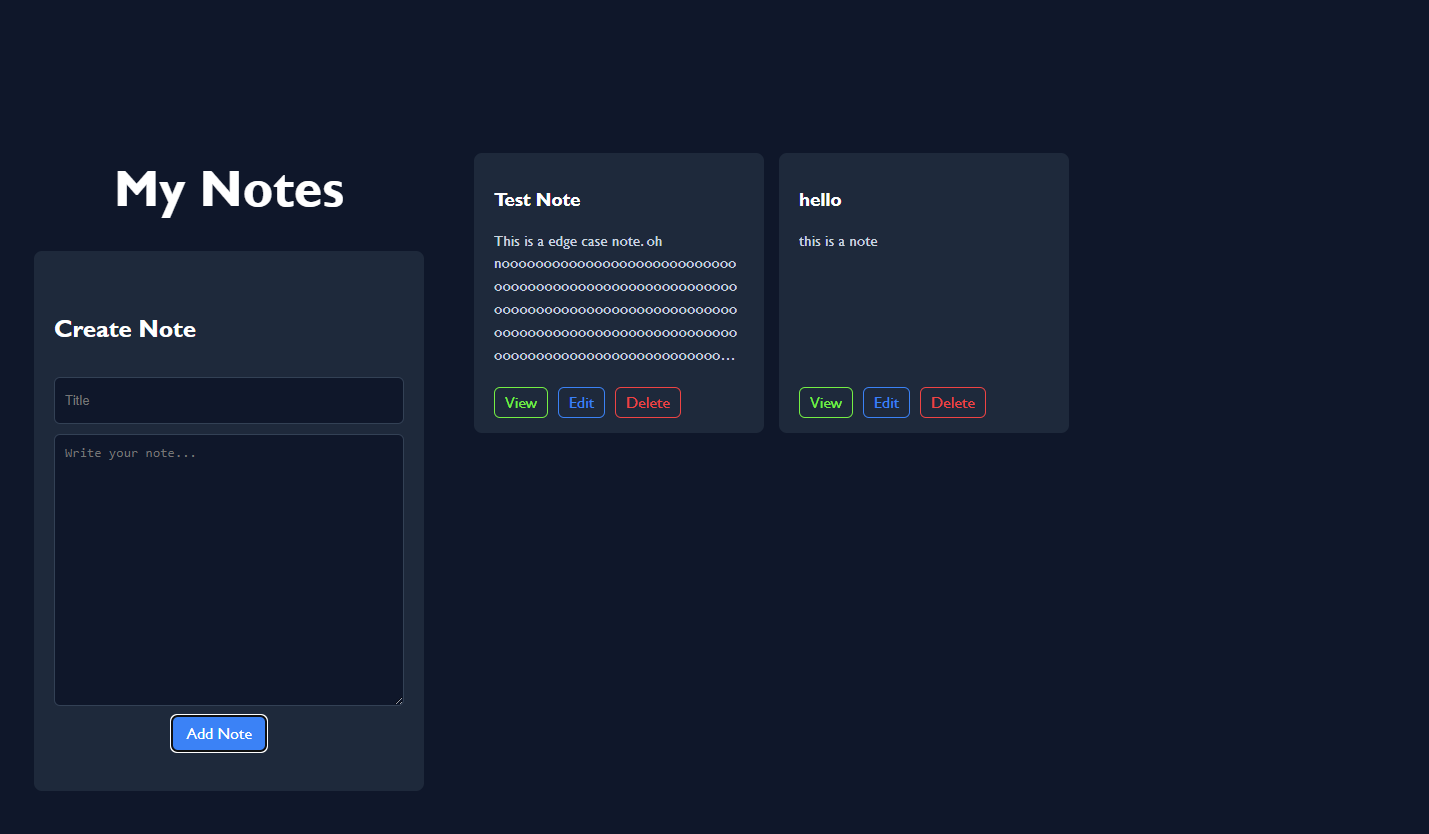 A full-stack notes application built with a Node.js and Express backend, PostgreSQL for data storage, and a React frontend. It lets users create, view, edit, and delete notes through a clean, responsive interface. The project focuses on solid engineering fundamentals: RESTful API design, database integration through Prisma, state management in React, and a clean separation between frontend and backend. It’s a practical demonstration of building and structuring a complete CRUD system, covering everything from data modelling to UI development.