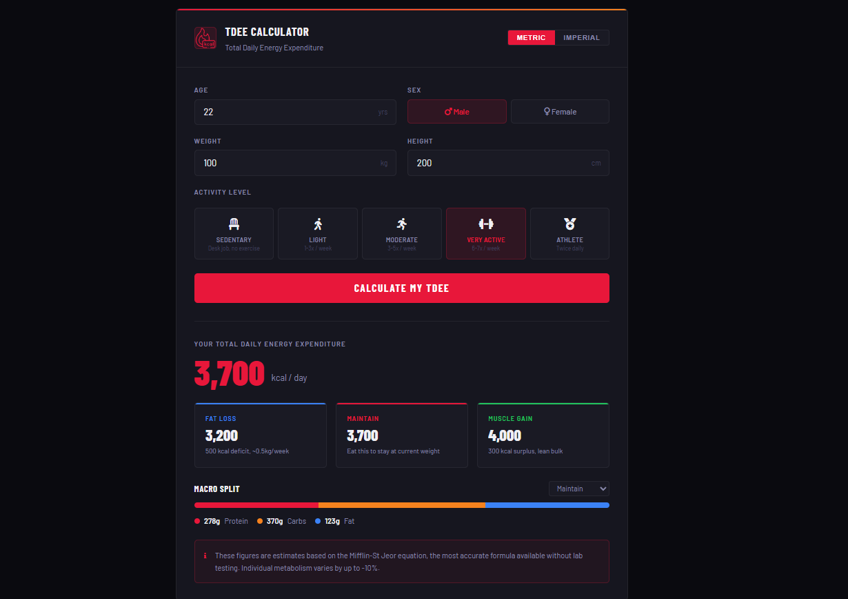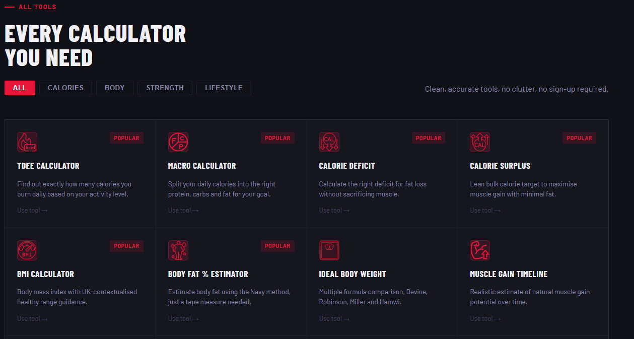 VeltaCalc is a fitness calculator platform built with vanilla HTML, CSS and JavaScript. It covers everything from TDEE and macros to 1RM and body fat estimation, with 15 tools designed to be fast, accurate and accessible without sign-ups or clutter. Built and grown solo, with a focus on SEO and organic traffic.